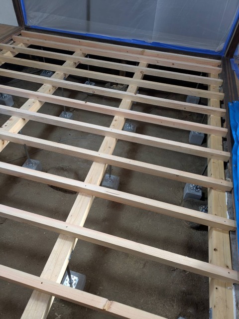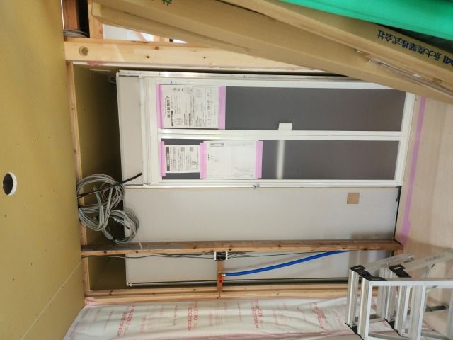 新築現場ではユニットバスが設置されました。