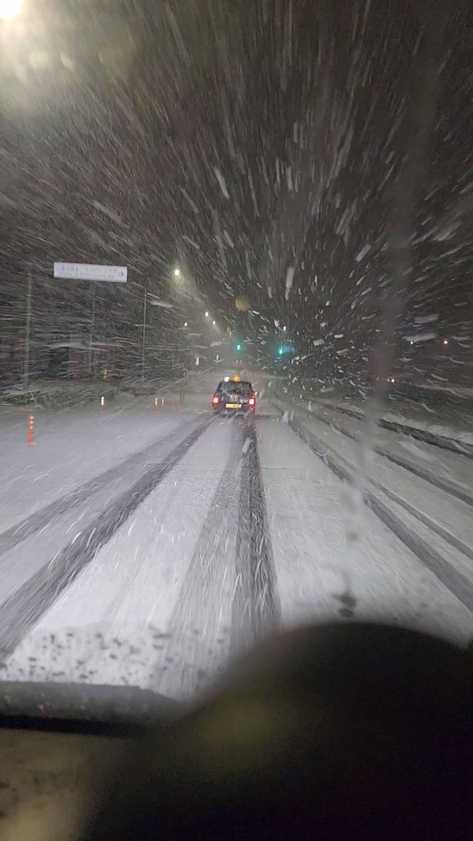 まさかの明方に雪……