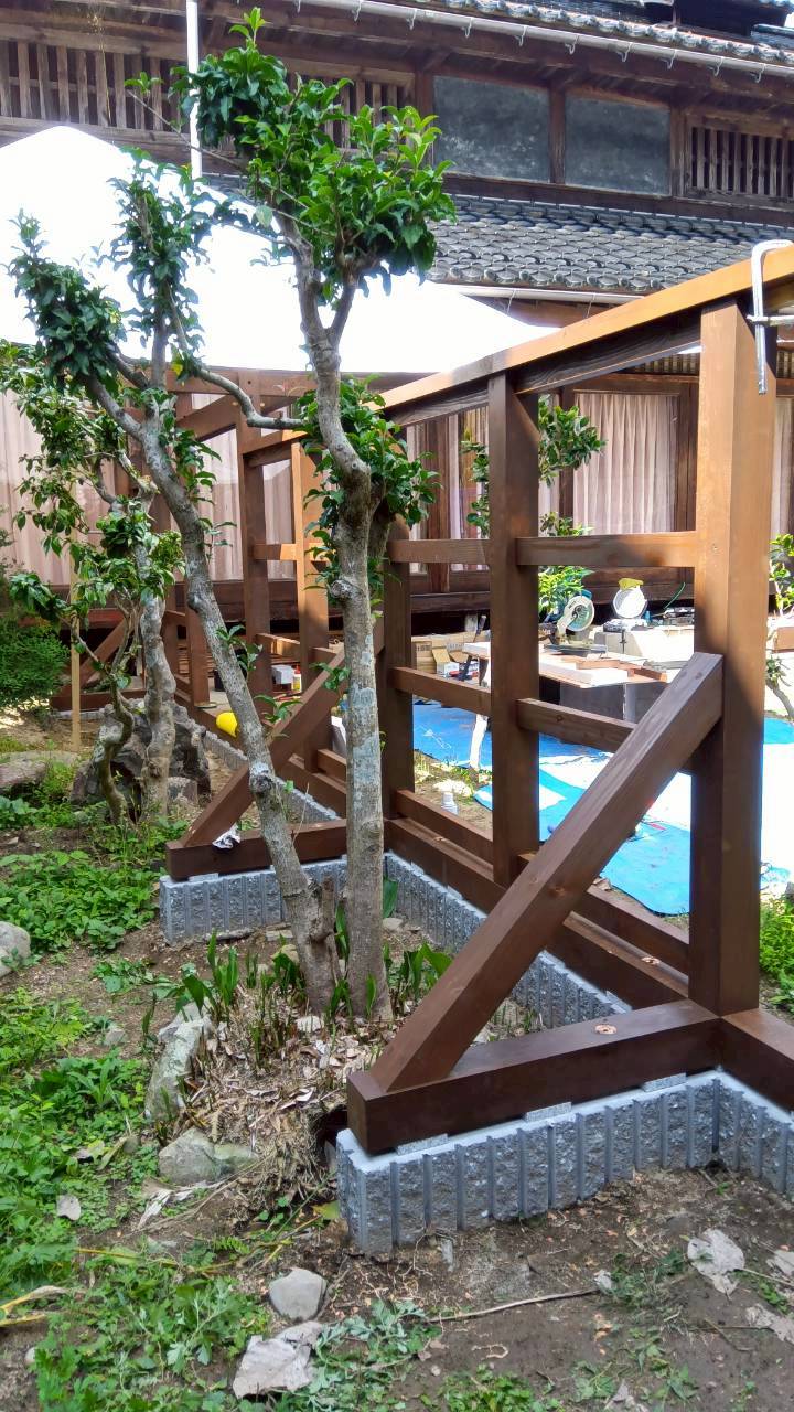 木材を加工、設置する作業になります。