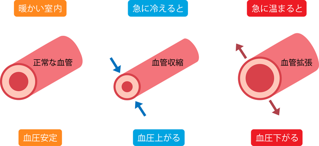 「暖かいリビング」から「冷えた廊下」に移動したとき、「温かい布団」から「夜中のトイレ」に立ったとき。そして「寒い脱衣所」から「あつあつの浴槽」に入ったとき…。