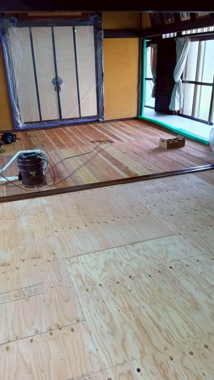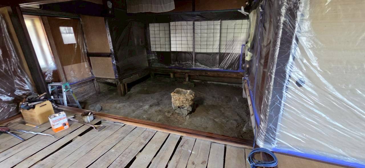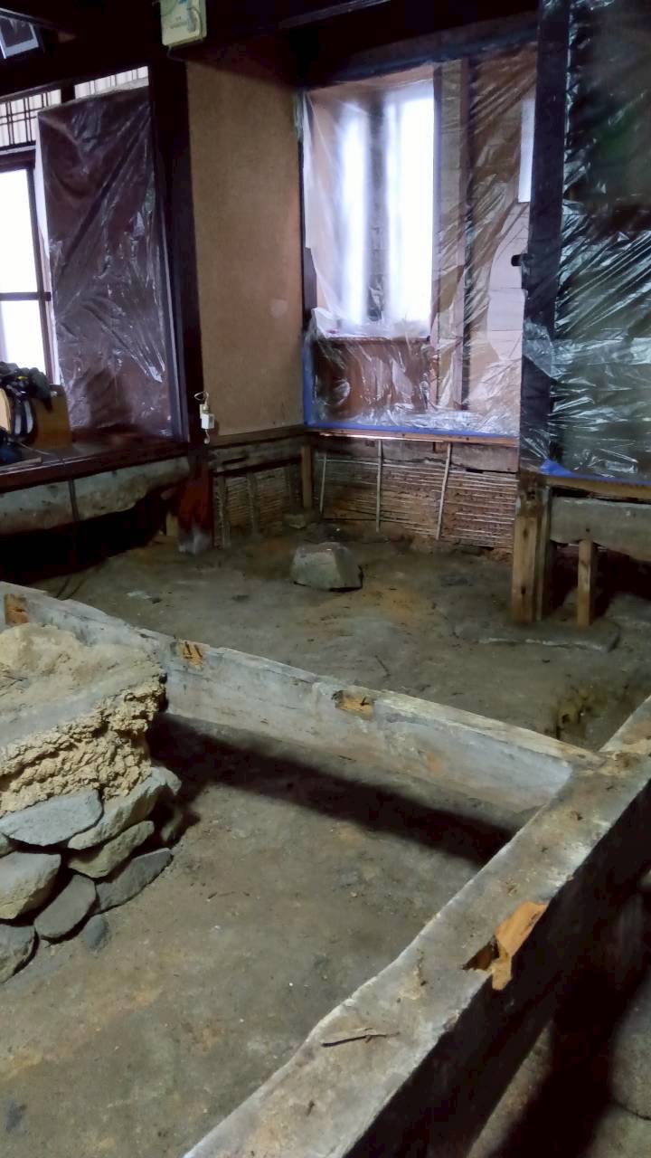 土台には昔ながらの古い丸太が使われていて、凹凸があるため床が波打っていました。