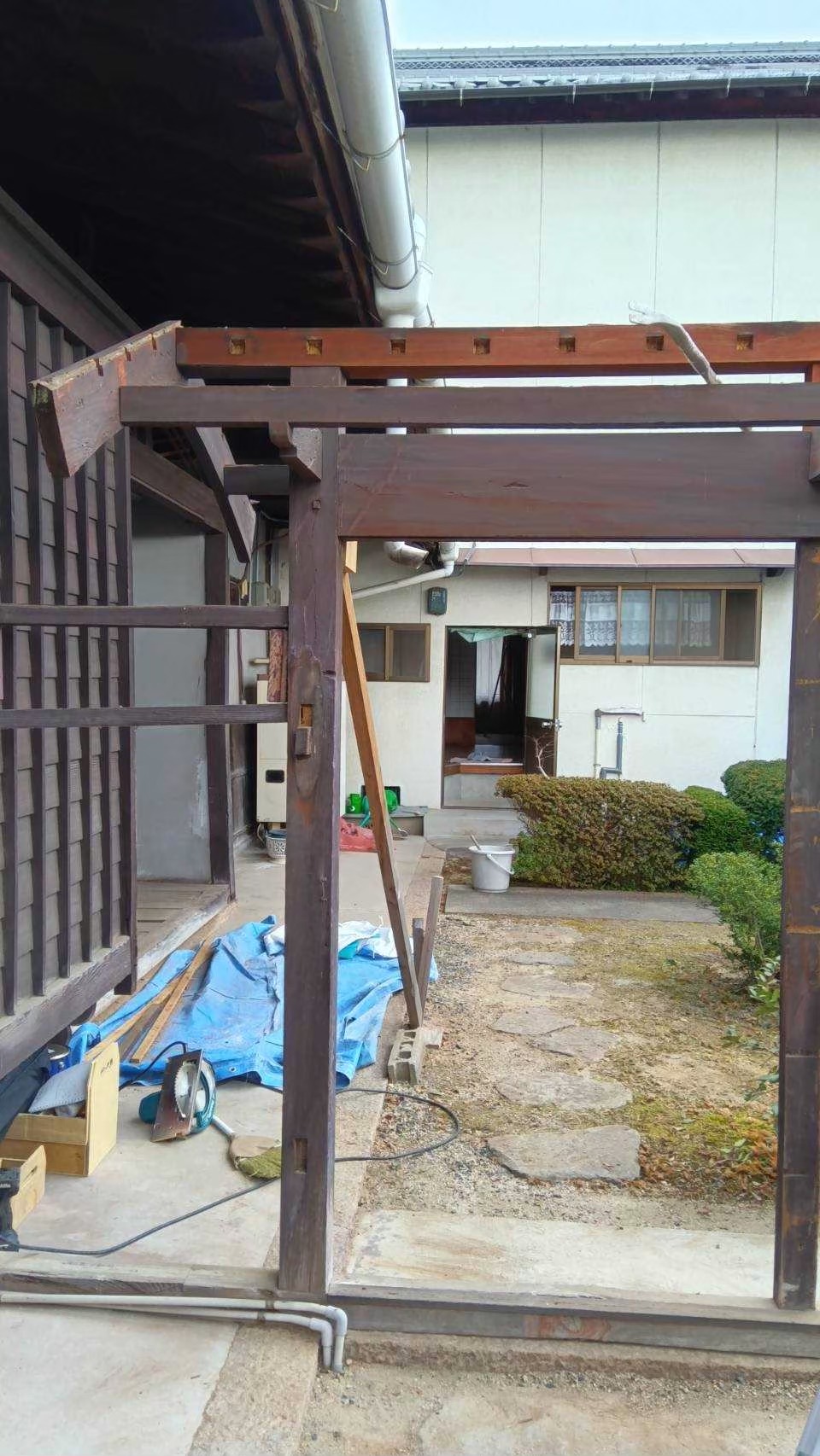 1年ほど前から少しずつやらせていただいている邸宅で、門まわりと床を修繕しています。